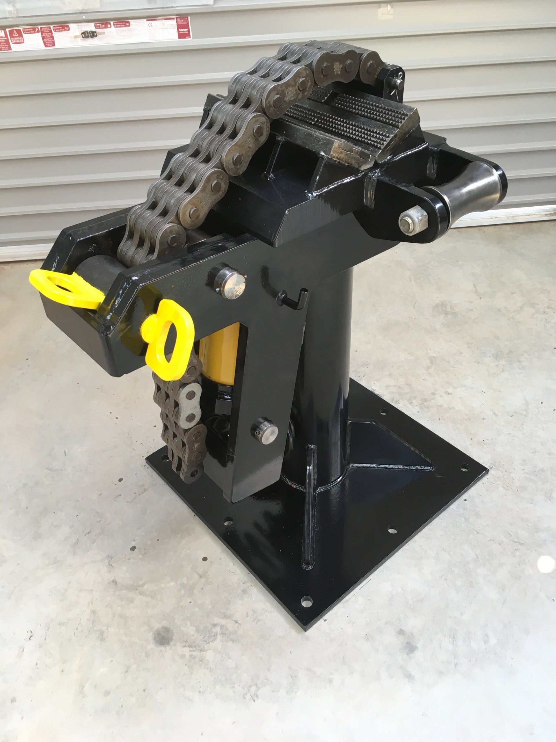 Air / hydraulic heavy duty chain vice to holding 3" to 14" dia tools.