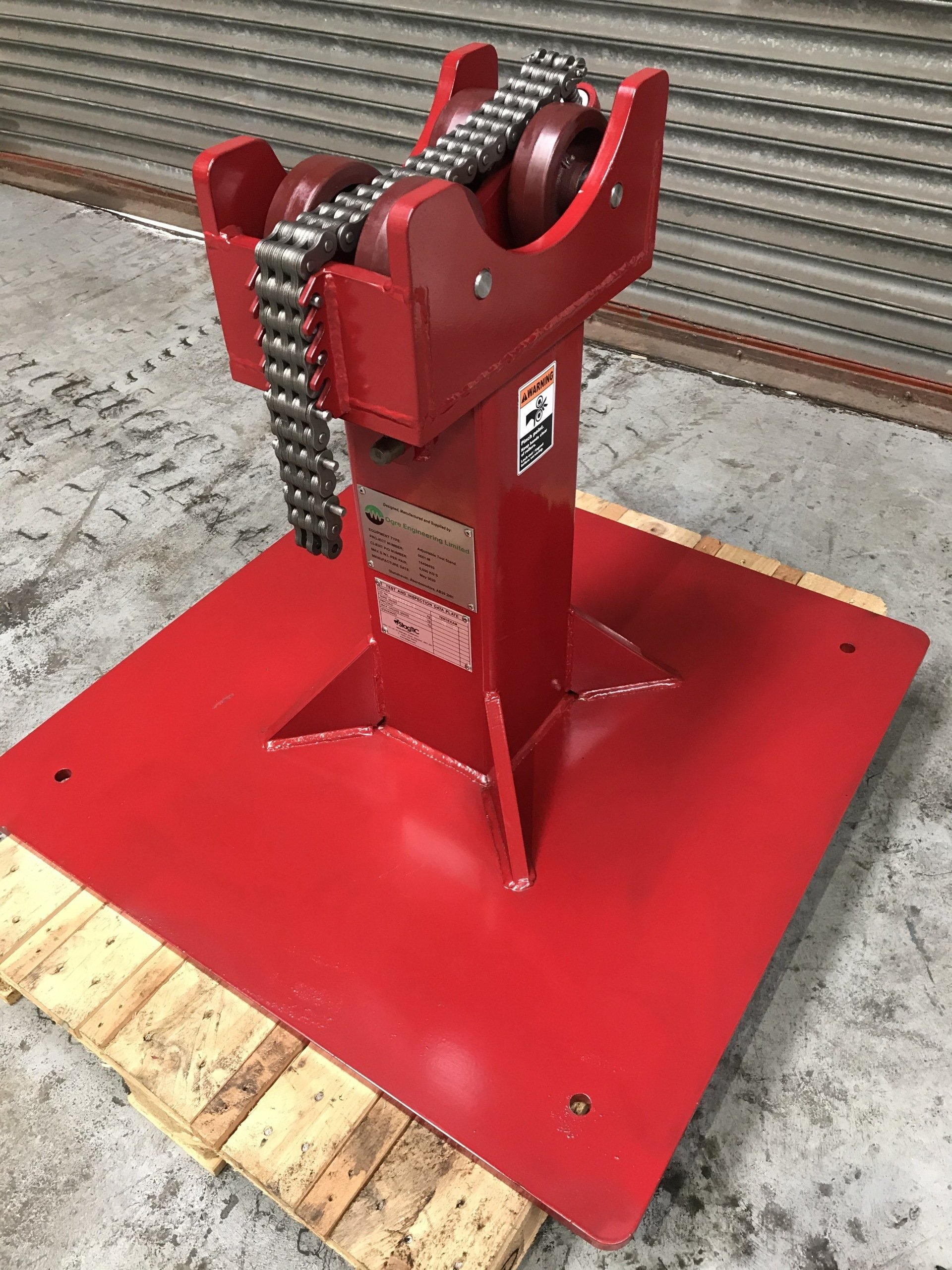 Fully adjustable height, rollers to allow ease of turning the tool c/w locking down chain - load tested.